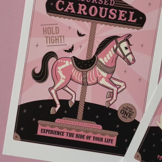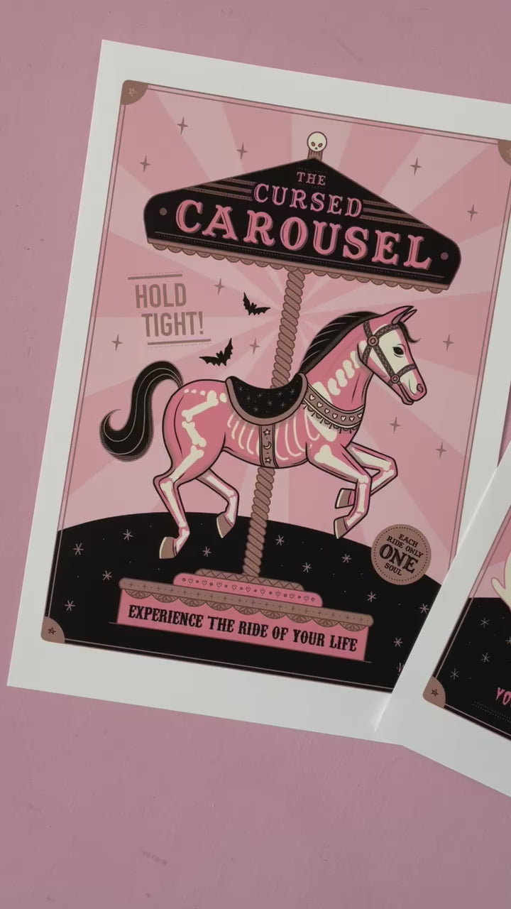 A signed, giclee inkjet fine art print of my original illustration: "Ghost Train". There are 3 different prints in this fairground circus series. This sideshow print features a ghost train skull with cute ghosts.