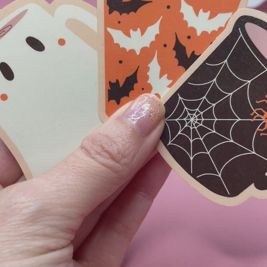 Spooky Coffee Mugs Stickers: Ghost, Bat, Spiderweb Vinyl Sticker