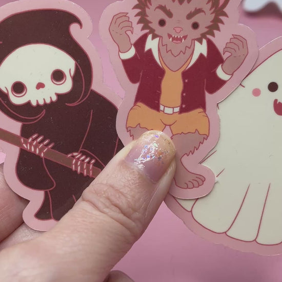 Spooky Monster Stickers: Grim Reaper Death, Werewolf, Ghost Vinyl Sticker